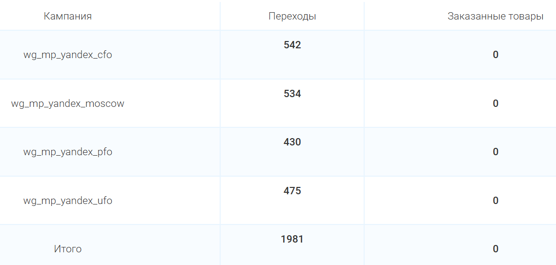 Статистика показала: за время работы рекламы ни одного товара с карточки заказано не было.